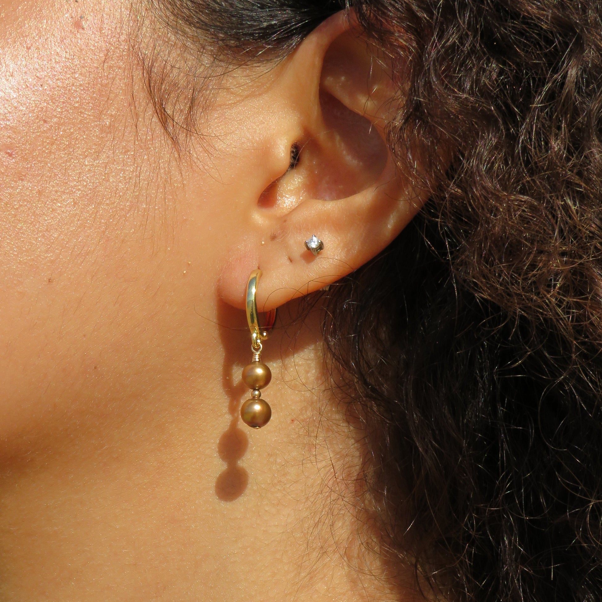 Gold freshwater pearl huggie hoops